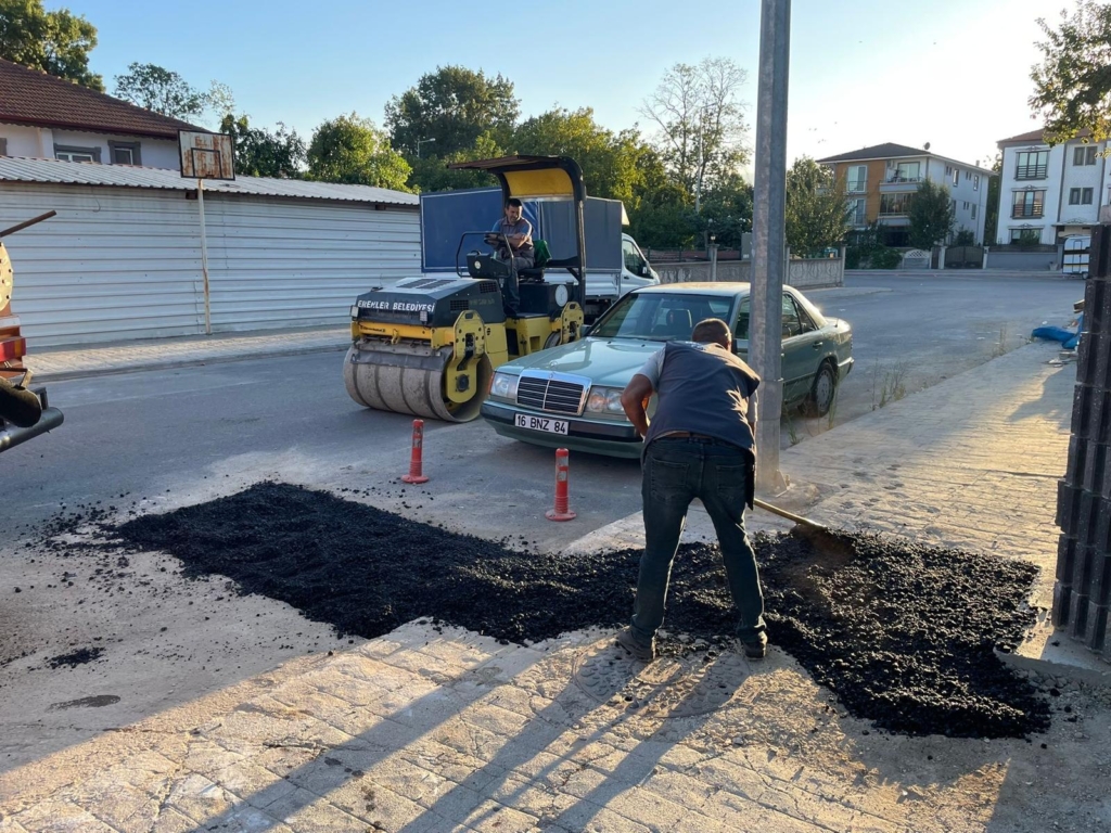 sokaklarda yol bakım ve asfalt çalışması gerçekleştiriyor. Belediyeden yapılan açıklamada, “Erenler