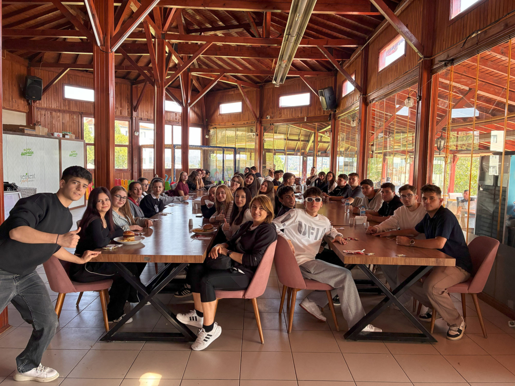 Sosyal Tesisleri’nde düzenlenen öğle yemeğinde kısa bir mola veren öğrenciler, günün