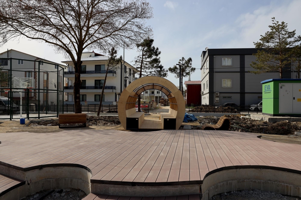 dönencelerin montajı tamamlandı. Satranç alanının zemin hazırlıkları yapılıyor