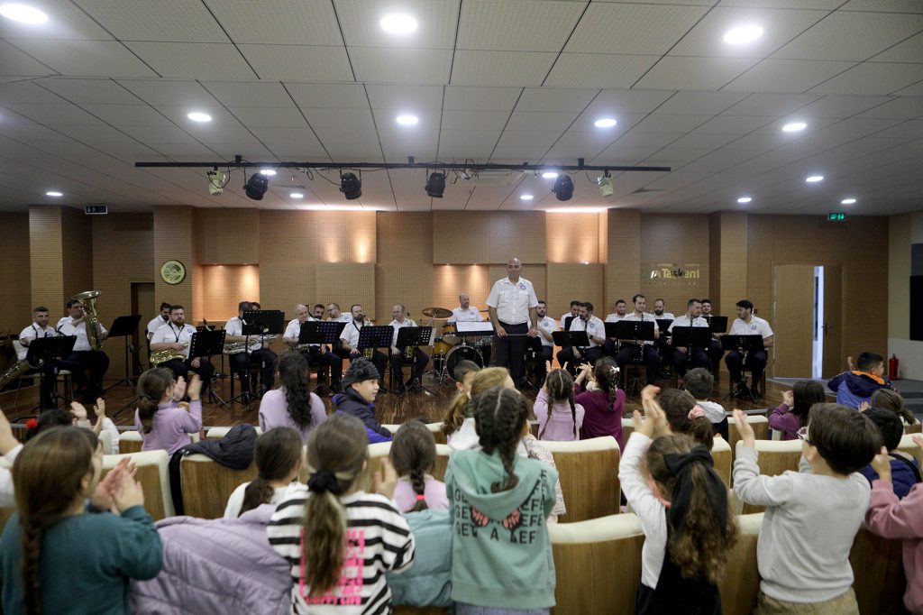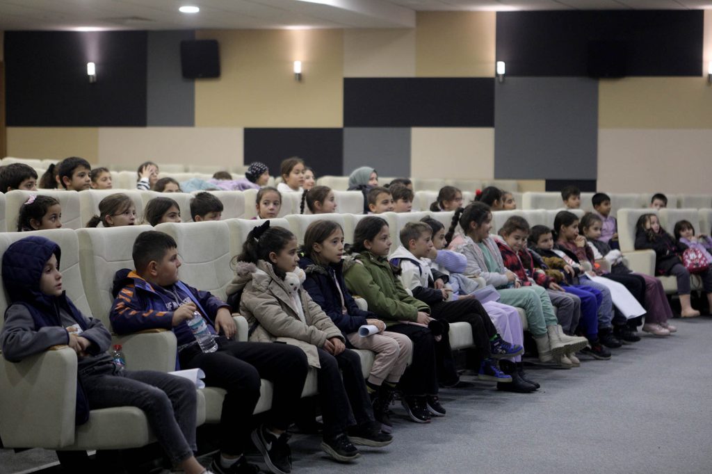 74 öğrenciyi ağırlayan neşeyle, enerji dolu geçen konserde alkışlarla ritim tutan çocuklar